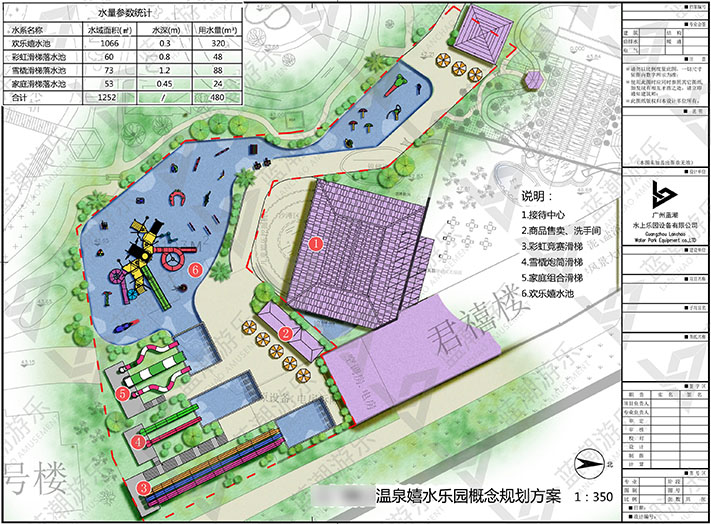 广东·温泉嬉水乐园还包括彩虹竞赛滑梯、雪橇炮筒滑梯、家庭组合滑梯、欢乐戏水池。现在的社会年轻人都比较追求刺激,所以在这个水上乐园项目前期沟通规划中就要求产品新颖刺激。